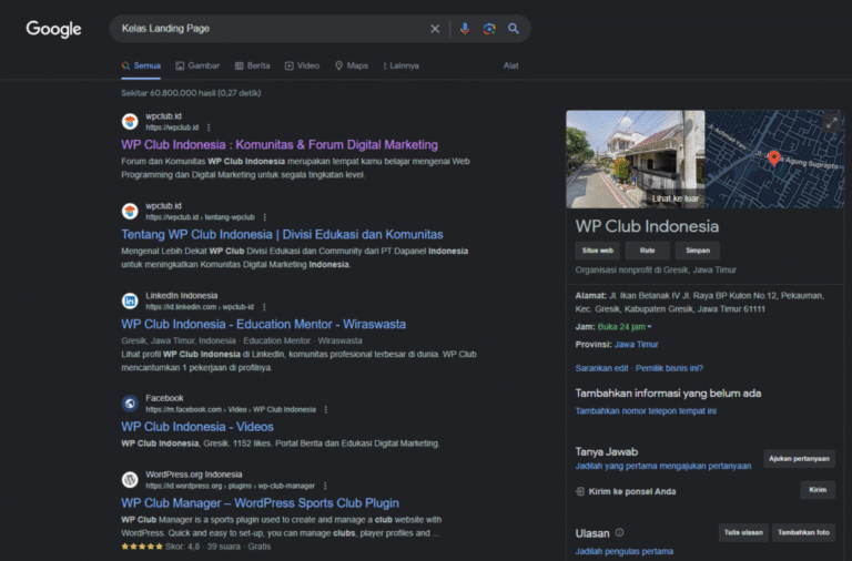 Dapatkan keuntungan dari Kelas Landing Page dan SEO dari WP Club Indonesia! Pelajari cara mengoptimalkan Landing Page Anda agar muncul di halaman mesin pencarian Google.